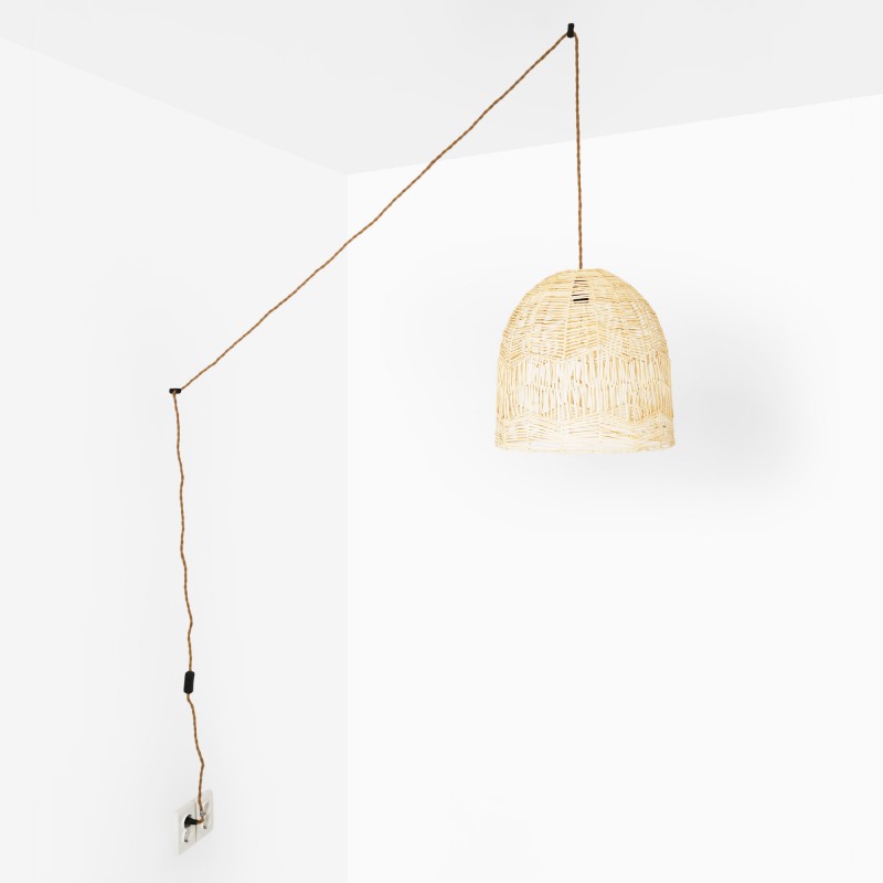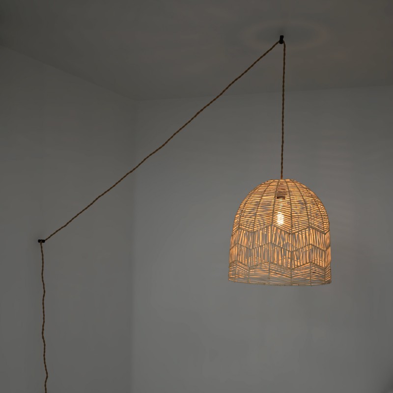 • Installation flexible : comprend un câble réglable avec deux crochets de décentralisation pour différentes configurations. Comprend un interrupteur et une prise Schuko, idéale pour les espaces sans point lumineux à proximité. Disponible en noir, blanc et corde naturelle.