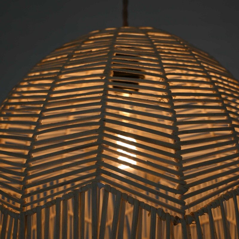Lampe suspendue "NORMA", fabriquée à la main en osier avec des finitions de haute qualité. Son tressage diffuse la lumière de manière chaleureuse et subtile, en mettant en valeur sa texture.