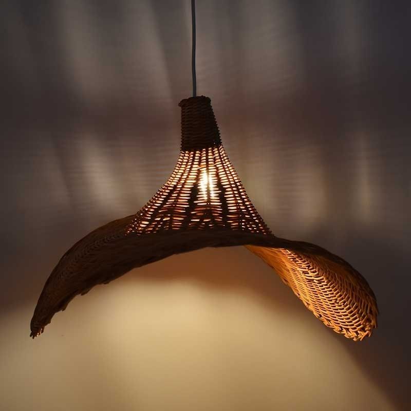 Notre suspension "TIEN" est entièrement réalisée à la main en osier, offrant ainsi la chaleur et l'authenticité des fibres naturelles. Son design unique, en forme de chapeau de femme, en fait la pièce maîtresse de tout espace où elle est installée.