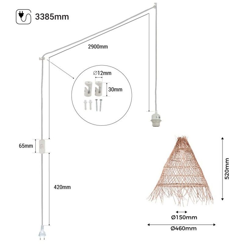 Suspension en osier "Willow" avec interrupteur et prise murale