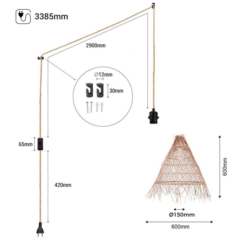 Le plafonnier décentré "Willow" est compatible avec toute ampoule E27 d'une puissance maximale de 60W (non incluse) et est disponible en trois couleurs de câble (blanc, noir et corde naturelle) pour s'adapter parfaitement à l'environnement de votre choix.