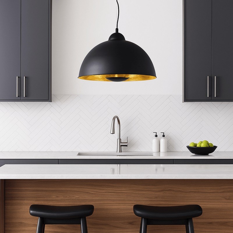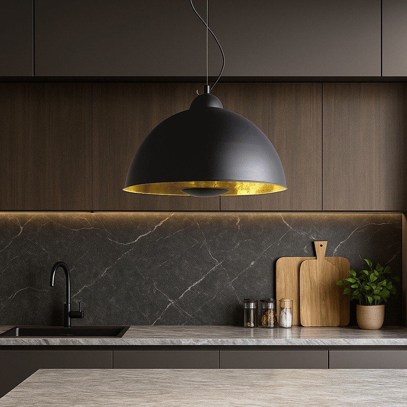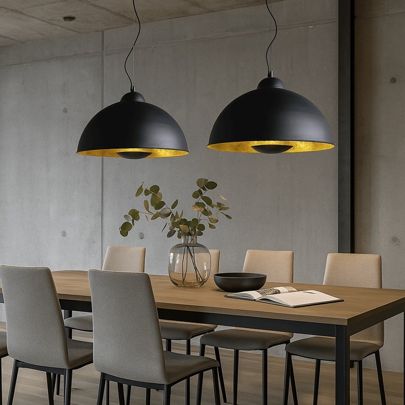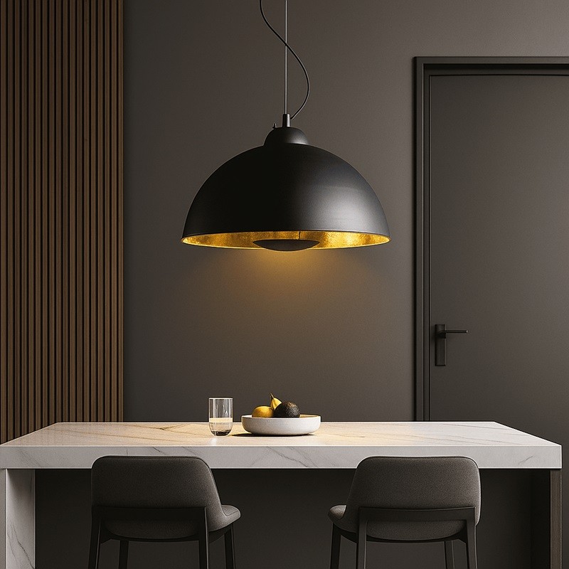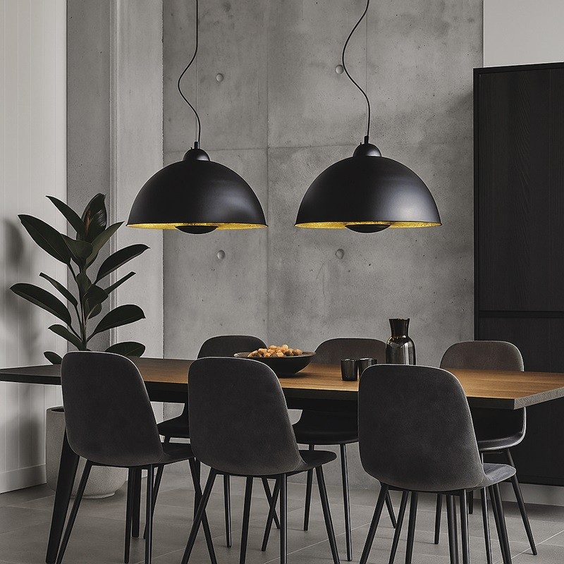 La suspension Galilei est un élément clé pour ceux qui souhaitent mettre en valeur leur décoration intérieure avec une touche rétro-industrielle. Son extérieur noir vieilli contraste élégamment avec l’intérieur doré, créant une lumière chaude et enveloppante qui transforme n’importe quelle pièce en un espace plein de personnalité.