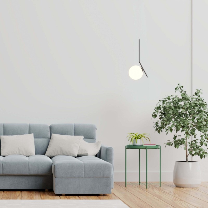 La suspension « HERMI » est dotée d’une structure en aluminium à la forme angulaire attrayante et d’un abat-jour sphérique en verre opalin à haute transmission lumineuse, offrant un éclairage brillant et homogène.