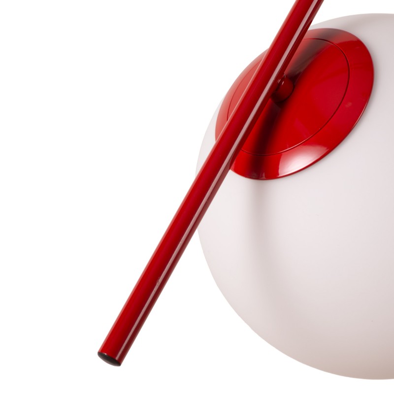 Suspension « HERMI » composée d’une sphère en verre opalin et d’une structure en aluminium.