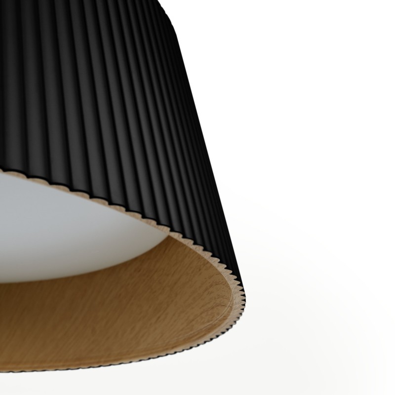 Notre lampe suspendue allie avec brio élégance et fonctionnalité dans un design unique. Sa structure en polycarbonate s'harmonise parfaitement avec un intérieur en bois, créant ainsi un contraste captivant.