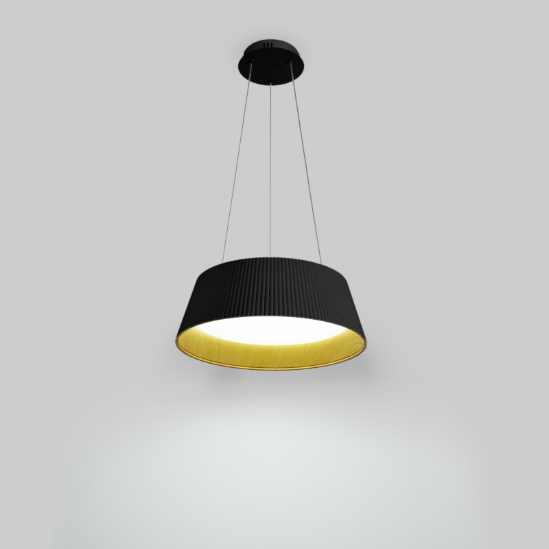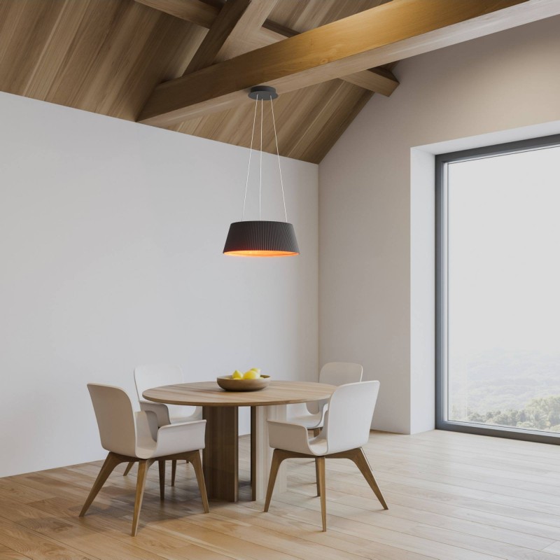 Découvrez la polyvalence et l'élégance de notre grande lampe suspendue LED. Disponible en blanc ou en noir, ce luminaire de plafond présente un design unique combinant le polycarbonate, un intérieur imitation bois et un diffuseur central en polycarbonate.