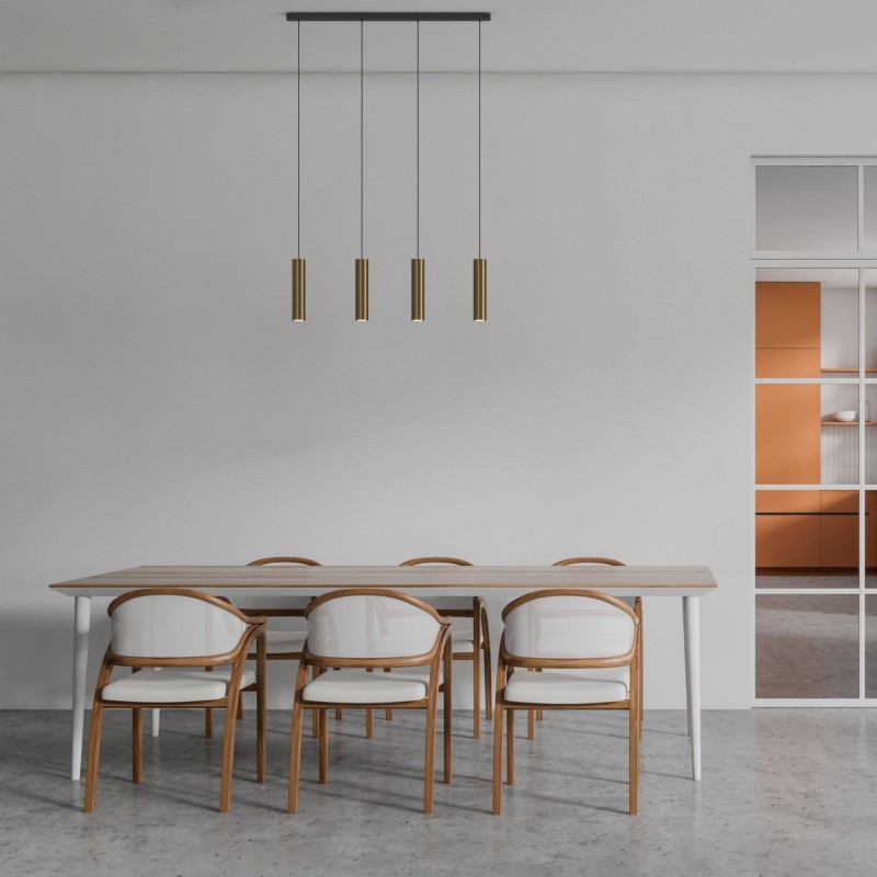 Cette lampe se compose de quatre projecteurs tubulaires et arbore un design moderne et minimaliste. Idéale pour un éclairage ciblé dans des espaces spécifiques tels que les tables, les comptoirs et les cuisines.