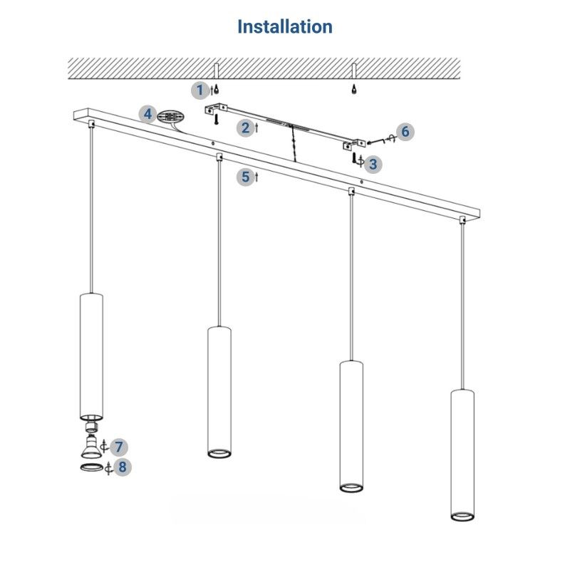 Cette lampe se compose de quatre projecteurs tubulaires et arbore un design moderne et minimaliste. Idéale pour un éclairage ciblé dans des espaces spécifiques tels que les tables, les comptoirs et les cuisines.