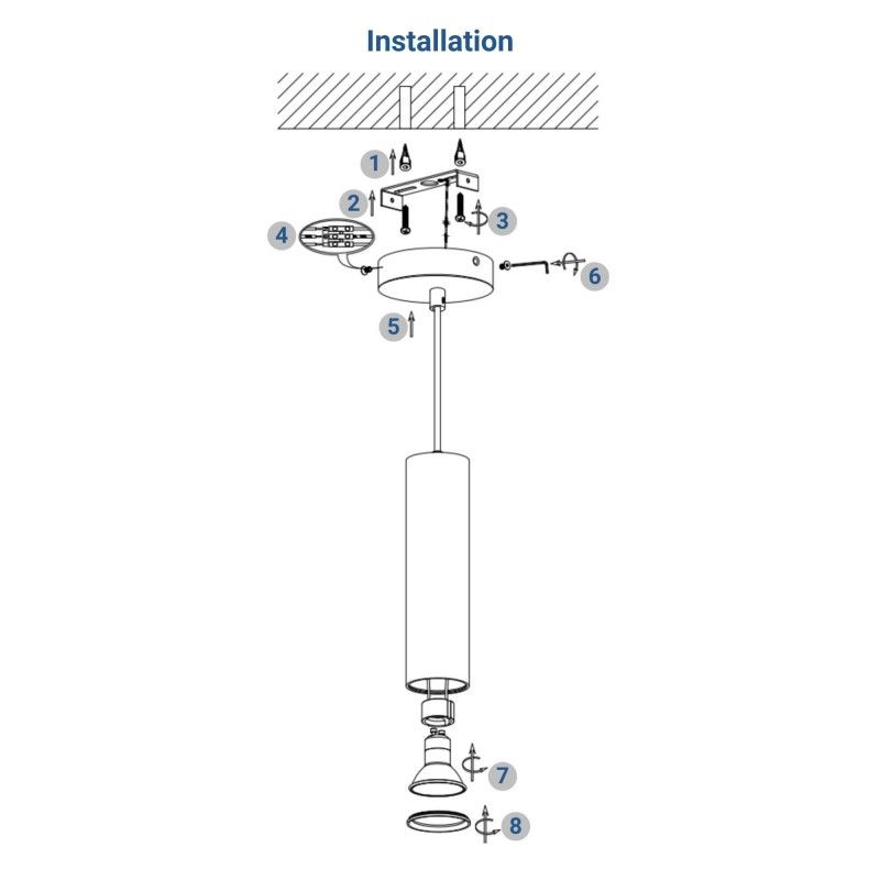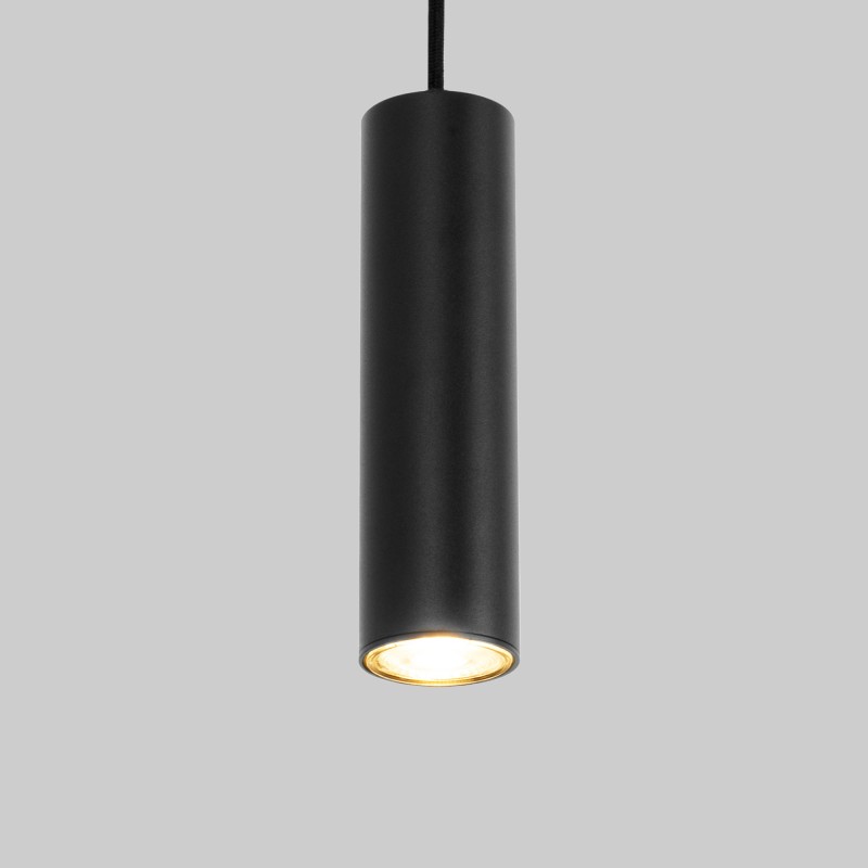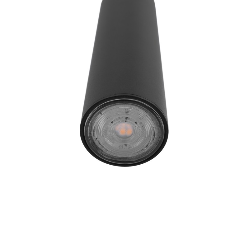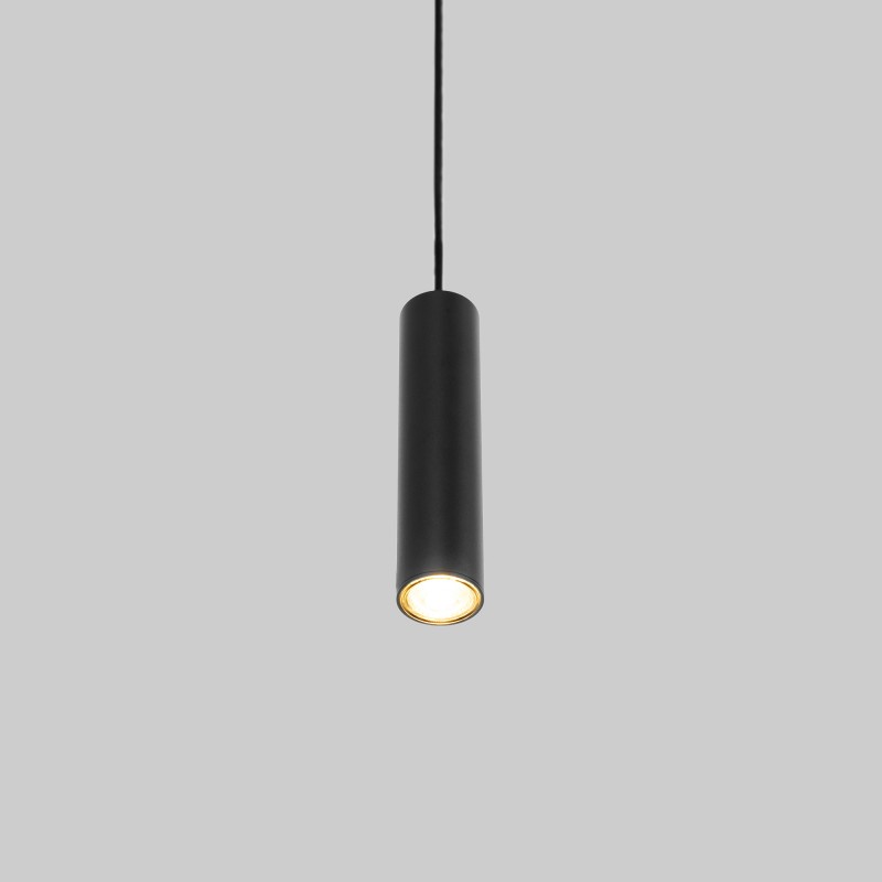 Compatible avec les ampoules GU10 jusqu'à 40W, le luminaire est équipé d'un câble ajustable en hauteur à partir de la rosace..