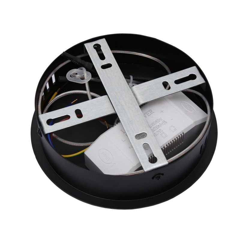 Son installation est simple et tous les éléments nécessaires sont inclus. Sa structure linéaire est solidement soutenue par deux câbles en acier plastifié, chacun d'eux étant fixé au plafond à l'aide d'une rosace.