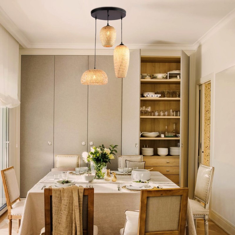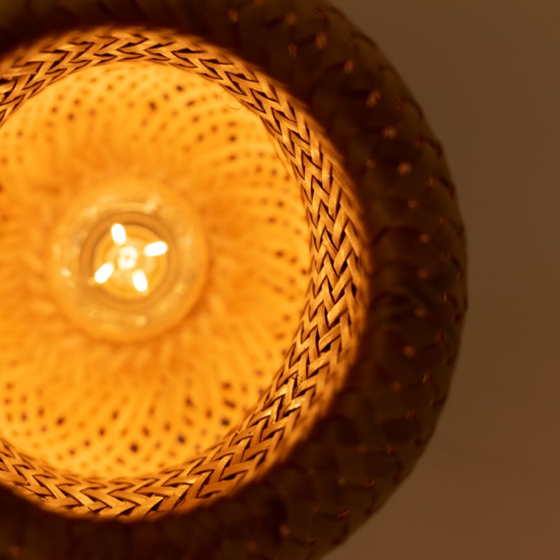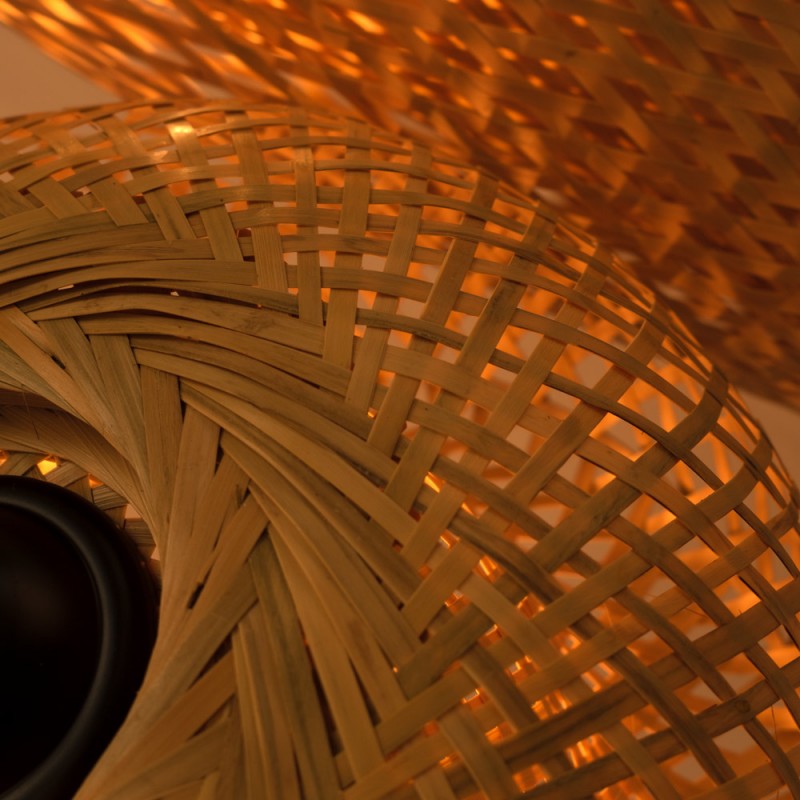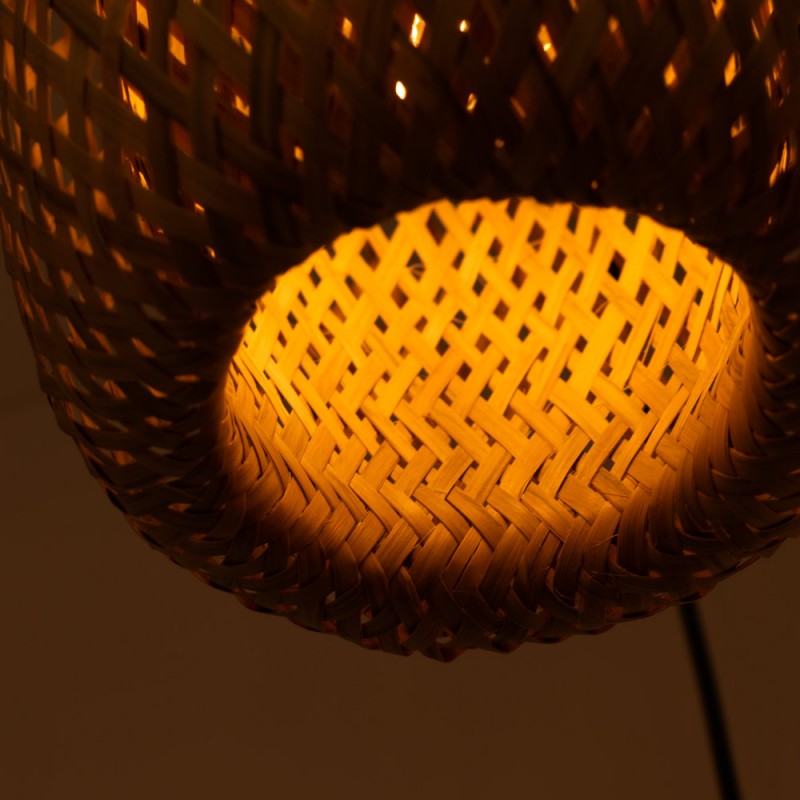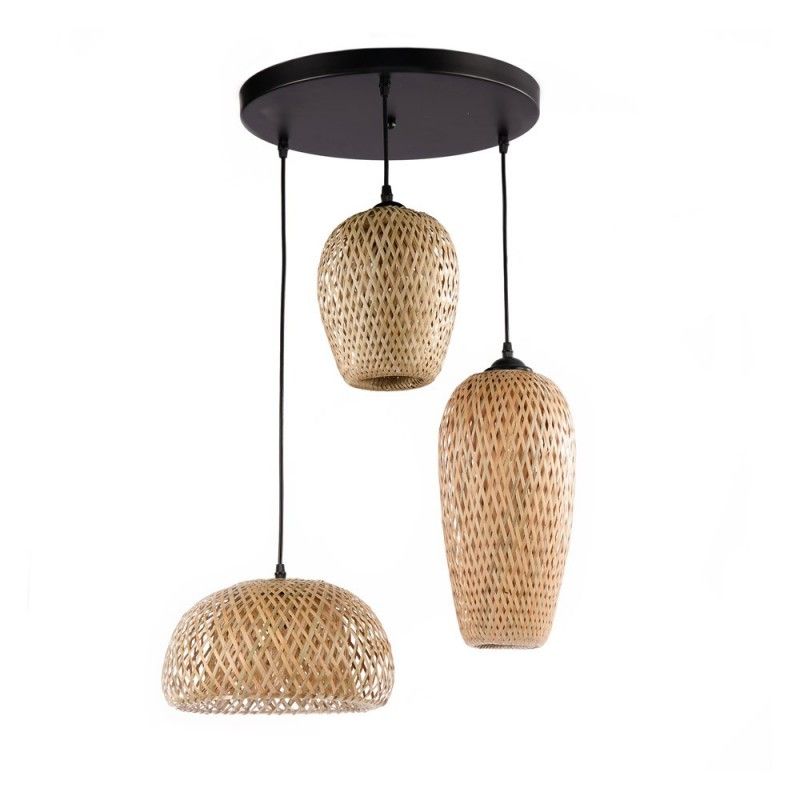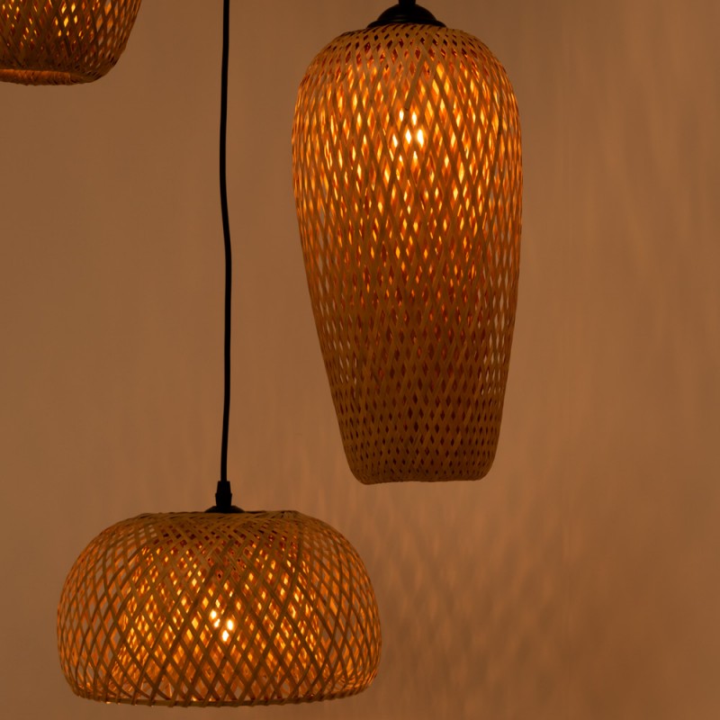 La suspension "Trisa" à trois lampes est un véritable bijou artisanal conçu avec soin, mettant l'accent sur les moindres détails pour obtenir un produit d'une qualité exceptionnelle. Son tressage expert crée un magnifique jeu d'ombres et de lumières lorsque la lumière se glisse à travers, créant ainsi des atmosphères harmonieuses et accueillantes.