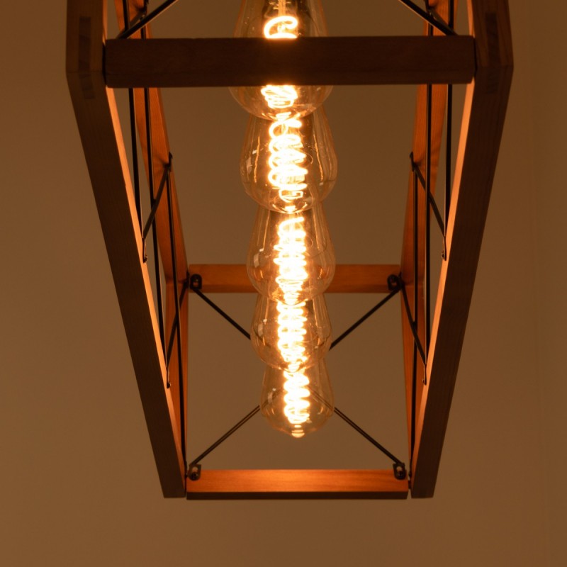 Suspension vintage en bois et métal "Sisca" - 5xE27