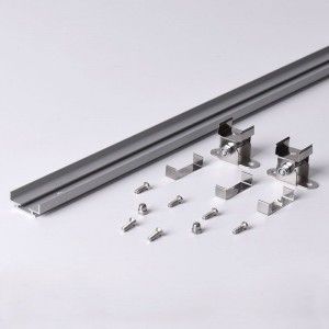 Le kit comprend un profilé en aluminium d'un mètre, des vis et 5 agrafes métalliques (3 sans vis et 2 inclinables avec vis).