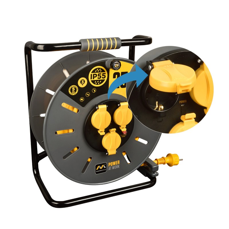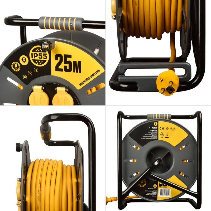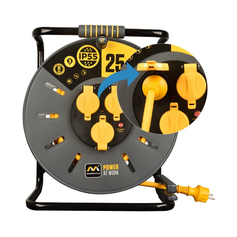 Enrouleur de câble Pro-XT - 3 prises - Câble haute visibilité 3x2,5mm2 - 25m - IP55