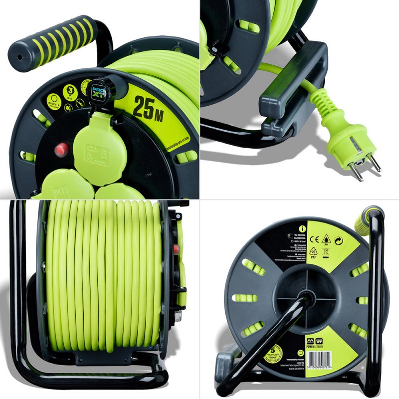 Enrouleur de câble Pro-XT - 3 sorties - Câble haute visibilité 3x1,5mm2 - 25m - IP44