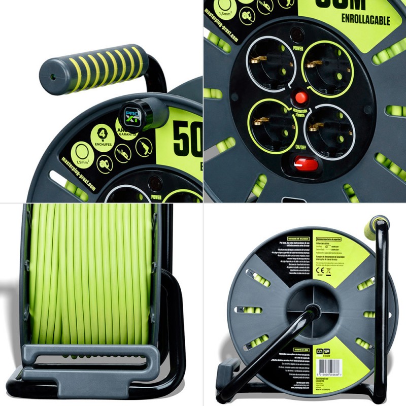 - Conception fonctionnelle: manivelle extensible, guide-câble intégré et poignée ergonomique bicolore pour une manipulation confortable et un rembobinage rapide et contrôlé.