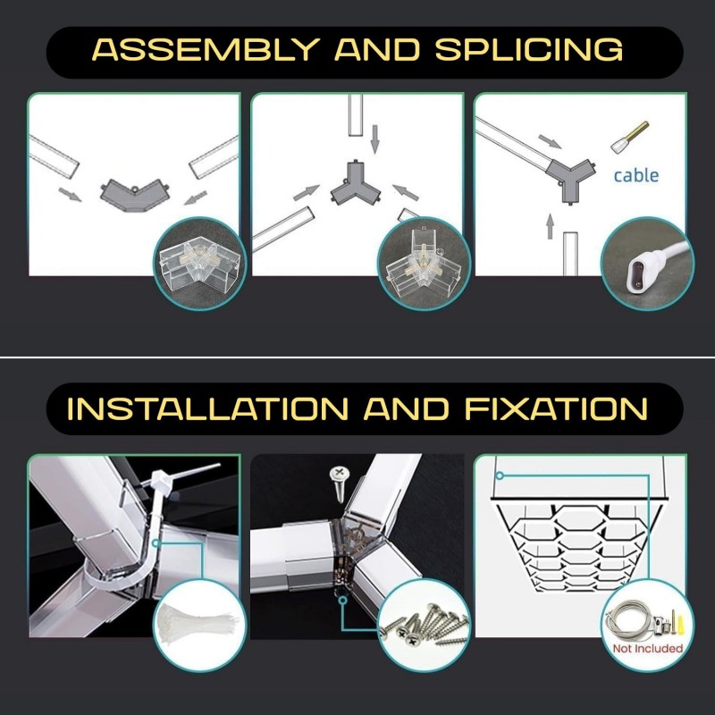 - Utilisation polyvalente : convient pour les plafonds, les murs ou les structures suspendues.