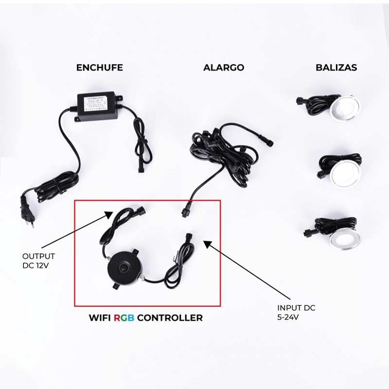 Contrôlez vos balises avec notre nouveau contrôleur WIFI RGB, en utilisant un appareil mobile à distance. Décidez de la couleur et illuminez votre pièce avec style et élégance. Fabriqué en plastique de haute qualité avec des finitions soignées en silicone, pour un toucher agréable à la main. Il mesure Ø59mm et est composé de deux câbles de 53cm chacun. A l'intérieur se trouvent les vis pour un montage rapide et facile.