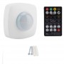 Le capteur de présence SP02B est un interrupteur à distance piloté par infrarouge. Il est équipé d'une télécommande qui peut être utilisée pour contrôler une multitude de fonctions. Vous pouvez régler la lumière ambiante. Vous pouvez ajuster l'heure à laquelle il fonctionne le jour et la nuit, jusqu'à un maximum de 24 heures. Vous pouvez régler le temps de repos, le délai est réglable, le temps minimum est de 10 secondes et le temps maximum de 30 minutes. En outre, vous pouvez également régler l'intensité en lux et la portée de détection en pourcentage, 25 %, 50 %, 75 % et 100 %, 100 % correspondant à 25 mètres.