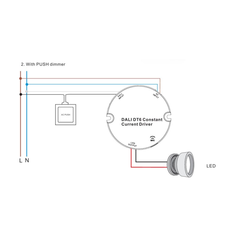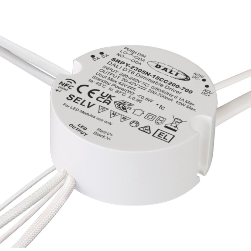 Driver à gradation DALI DT6 NFC monocolore 220-240V - Sortie 10-42V DC - 15W - 200-700mA