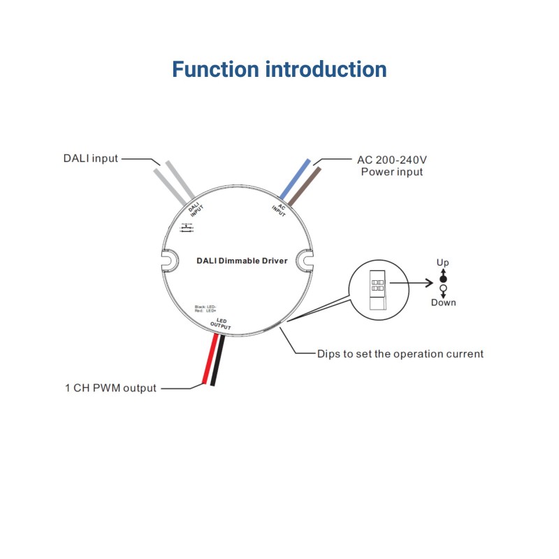 - Courant constant ajustable : Sortie de 350/700 mA, configurable grâce à un interrupteur DIP.