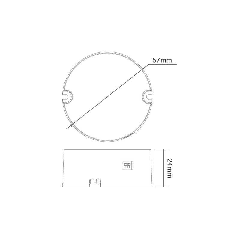 - Design compact et sécurisé : Boîtier en plastique isolé (IP20), idéal pour un usage intérieur. Dimensions Ø57 x 24 mm.