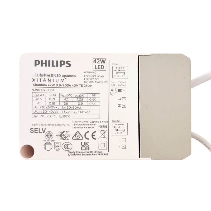Driver Philips Xitanium - Régulation TRIAC - 42W - 230V - Sortie 30-40V DC - 0.9/1.05A