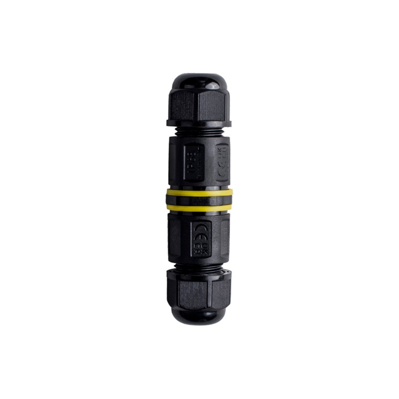 Ce connecteur étanche est conçu pour assurer une connexion électrique sûre dans les environnements exigeants. Idéal pour une utilisation en extérieur, il est submersible et résistant à la poussière et à l'humidité.
