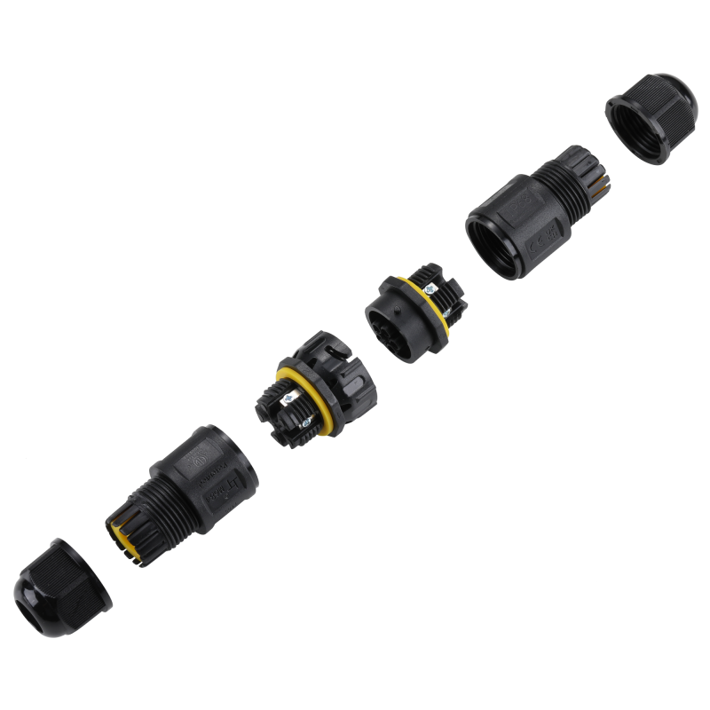 Ce connecteur étanche à 6 pôles est conçu pour assurer une connexion électrique sûre dans des environnements exigeants. Idéal pour les installations extérieures et sous-marines, il résiste à la poussière, à l'humidité et à une immersion prolongée.