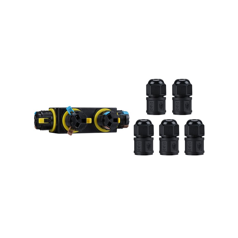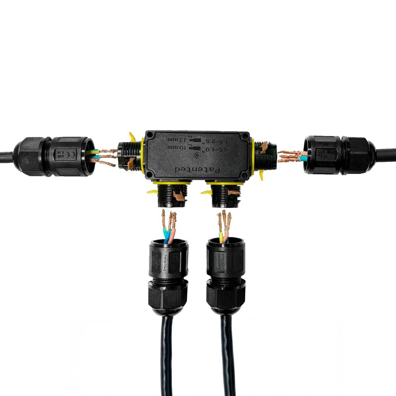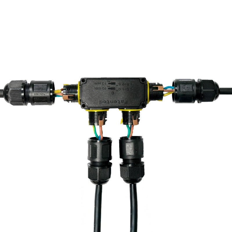 Ce connecteur étanche est conçu pour assurer une connexion électrique sûre dans les environnements exigeants. Idéal pour une utilisation en extérieur, il est submersible et résistant à la poussière et à l'humidité.