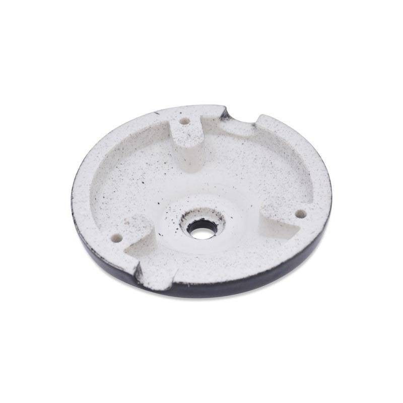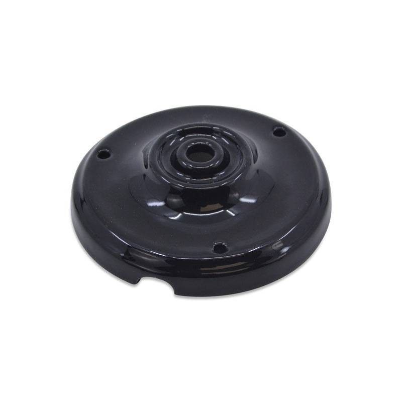 Rosace en céramique ronde de haute qualité. Elle possède un trou pour la sortie du câble, deux trous sur les côtés pour avoir la possibilité de la relier avec d'autres fleurons, et trois trous pour la fixer au plafond avec trois vis.