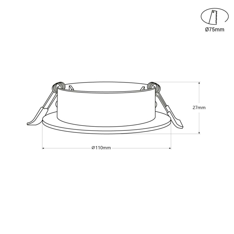 L'installation est simplifiée grâce à son système d'ancrage à ressort qui se fixe facilement sur une plaque de plâtre par simple pression. Il est compatible avec les ampoules GU10 et MR16, ainsi qu'avec les modules à driver externe. L'ampoule doit être installée à l'avant de la collerette.