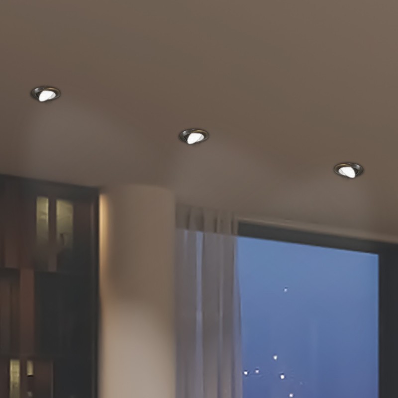 Son installation est incroyablement simple grâce à un système d'ancrage à ressort qui se fixe à la plaque de plâtre par simple pression. Elle est compatible avec les ampoules GU10 et MR16 ainsi qu'avec les modules LED équipés d'un driver externe.
