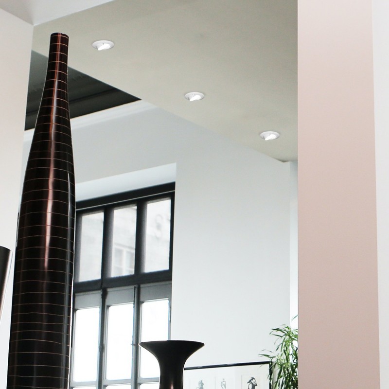 Son installation est incroyablement simple grâce à un système d'ancrage à ressort qui se fixe à la plaque de plâtre par simple pression. Elle est compatible avec les ampoules GU10 et MR16 ainsi qu'avec les modules LED équipés d'un driver externe.