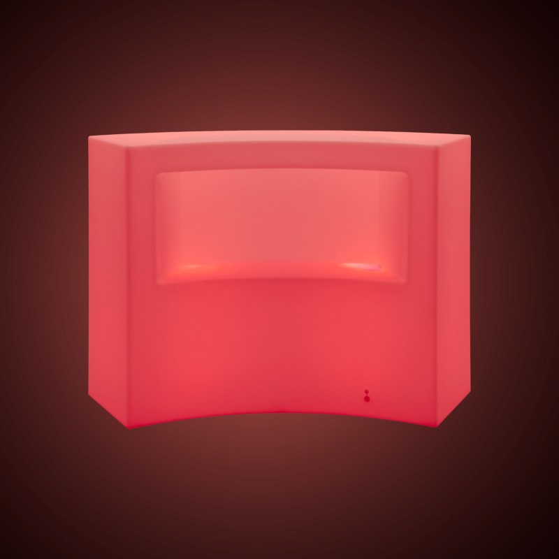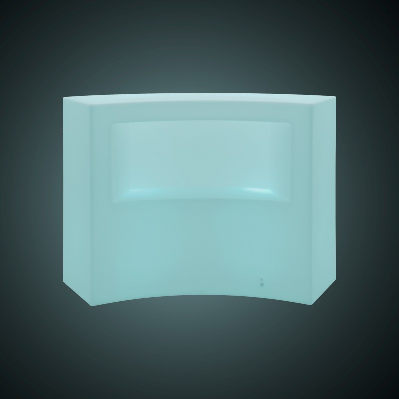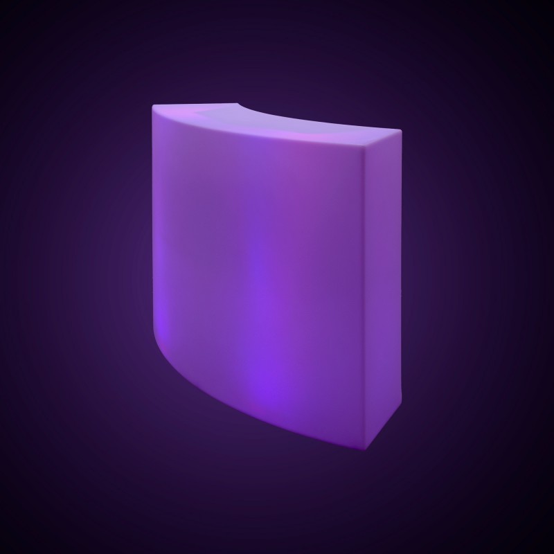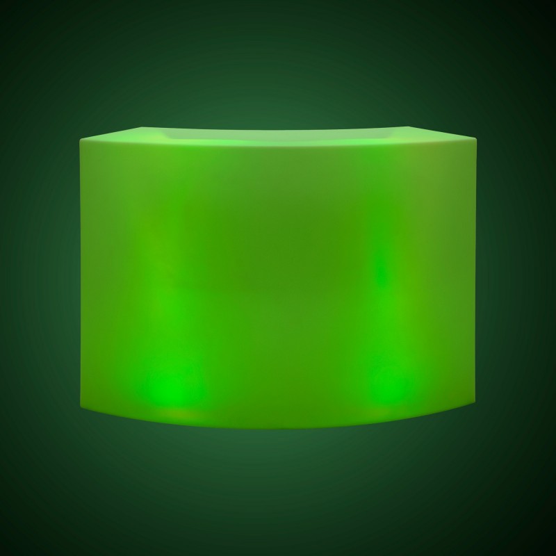 Comptoir courbe à LED pour l'extérieur avec 2 spots de 5W chacun. Personnalisez l'éclairage avec les couleurs RGBW et les effets de changement de couleur, en l'adaptant à chaque occasion.