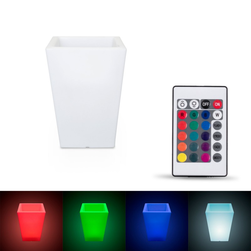 Jardinière carrée à LED RGBW - 12W - Rechargeable - Télécommandée