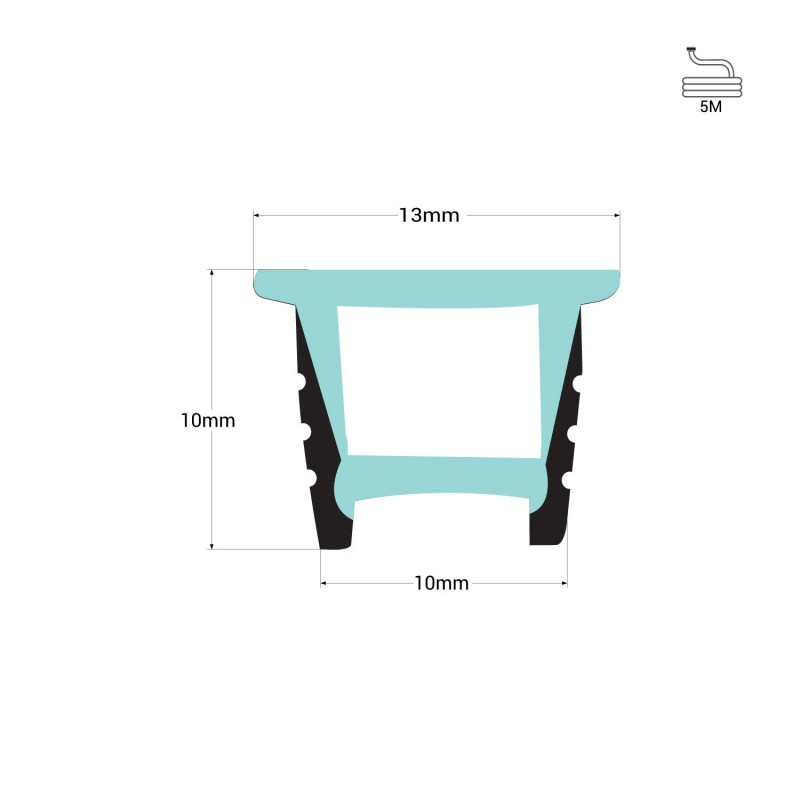 Gaine néon flexible en silicone encastrable pour rubans LED - 10x10mm - 5 mètres - Courbure verticale