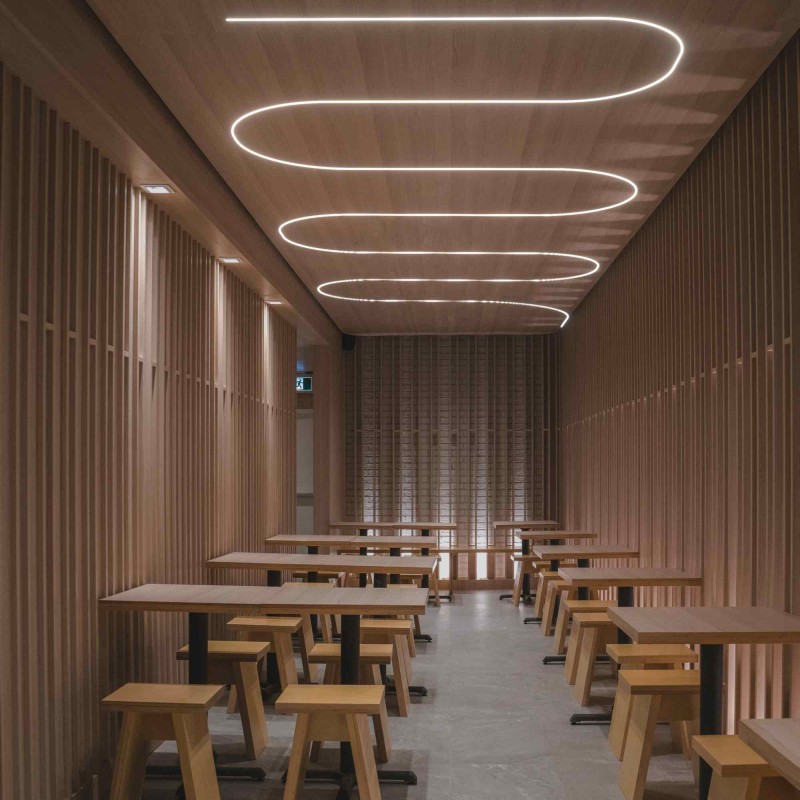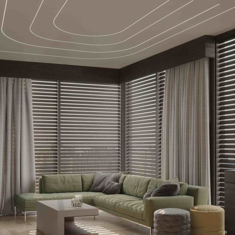 Ce profilé en silicone est conçu pour se plier verticalement, bien qu'il puisse être légèrement courbé horizontalement. Il émet la lumière de manière frontale pour créer des contours longitudinaux avec des angles saisissants.