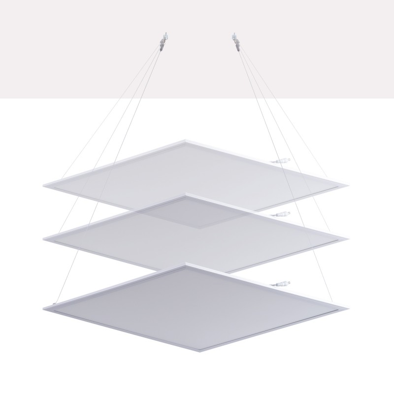 Composé de deux filins en acier, de deux équerres de fixation spécifiquement conçues pour les panneaux, assorties de vis correspondantes, ainsi que de deux attaches de plafond, ce kit fournit tous les éléments essentiels pour fixer de manière fiable les panneaux LED à l'emplacement souhaité.
