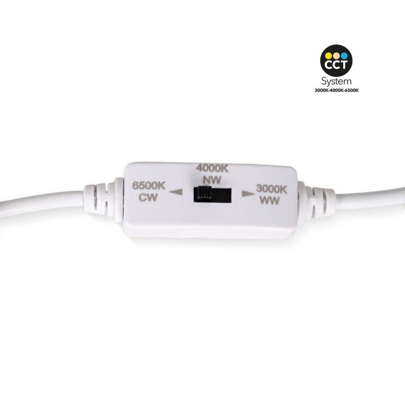 - Système CCT : Réglez la température de couleur en fonction de vos besoins entre blanc chaud (3000K), neutre (4000K) ou blanc froid (6500K), à l'aide d'un interrupteur intégré.