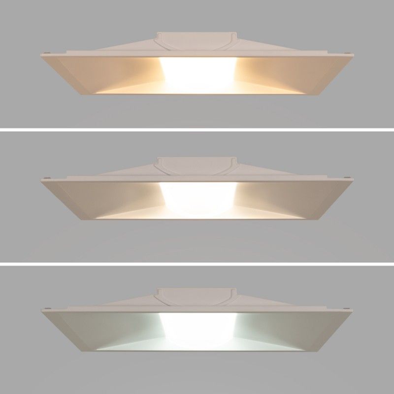- Faible éblouissement : son design troffer garantit un éclairage homogène avec un faible indice d'éblouissement (UGR<18).