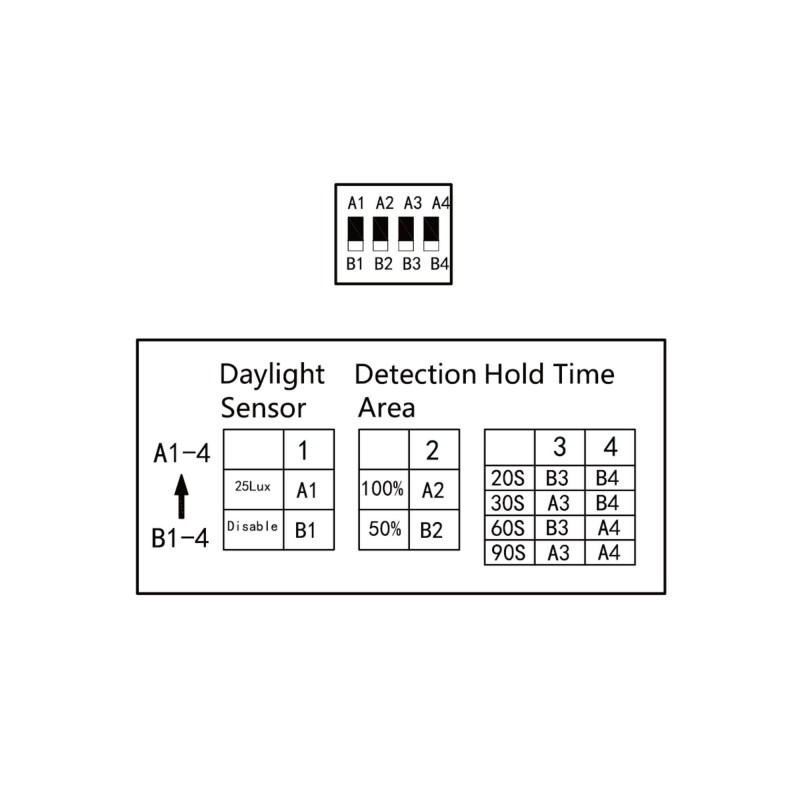 - Détecteur PIR et crépusculaire: activation automatique en cas de mouvement et de lumière ambiante.