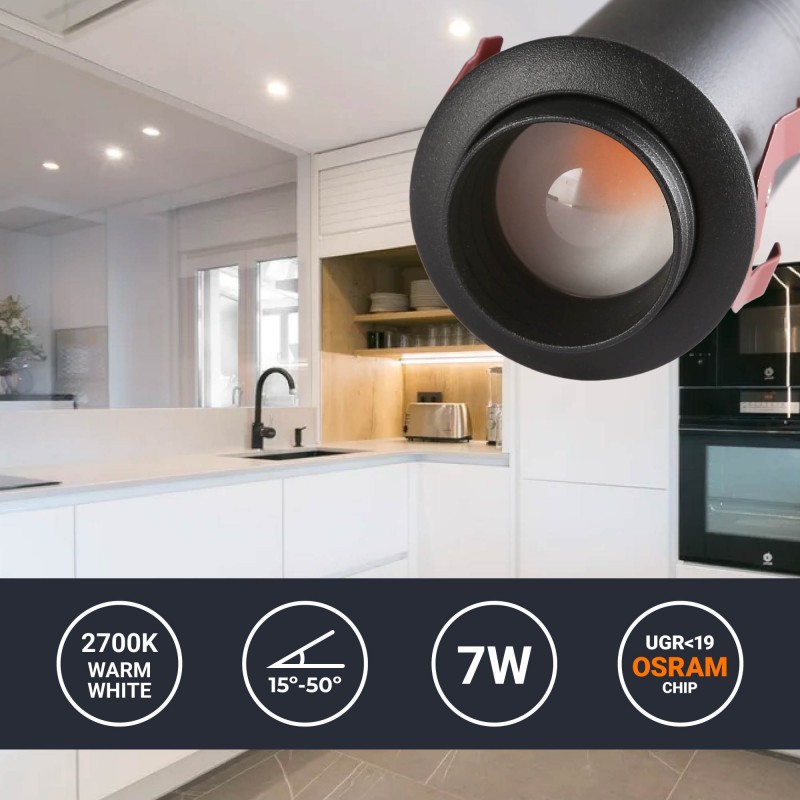 Spot encastré au plafond "ROMI" 7W - Zoom - Puce OSRAM - 2700K