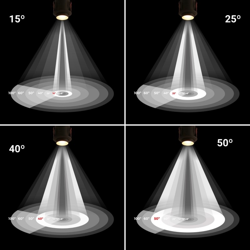 - Zoom intégré : Permet d’ajuster l’angle d’ouverture lumineuse pour couvrir plus ou moins d’espace, selon les besoins.