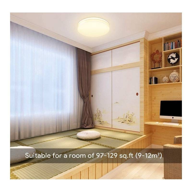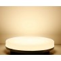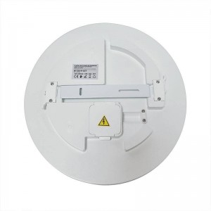 Ce plafonnier LED est constitué d'une base en plastique blanc, qui abrite la plaque de LED SMD 2835, ainsi que le driver et les connexions dans un coffret étanche intégré. Le couvercle diffuseur est en polycarbonate opaque, et affiche un angle d'ouverture de 120º : la lumière projetée par ce plafonnier rond est intense et homogène, sans zones d'ombre.