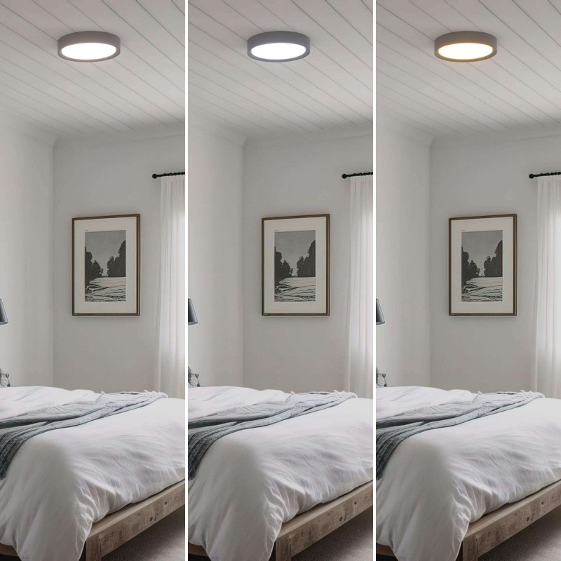 Ce plafonnier rond de surface au design moderne et élégant est disponible en blanc avec un cadre blanc ou gris, offrant ainsi une esthétique adaptable à différents décors.