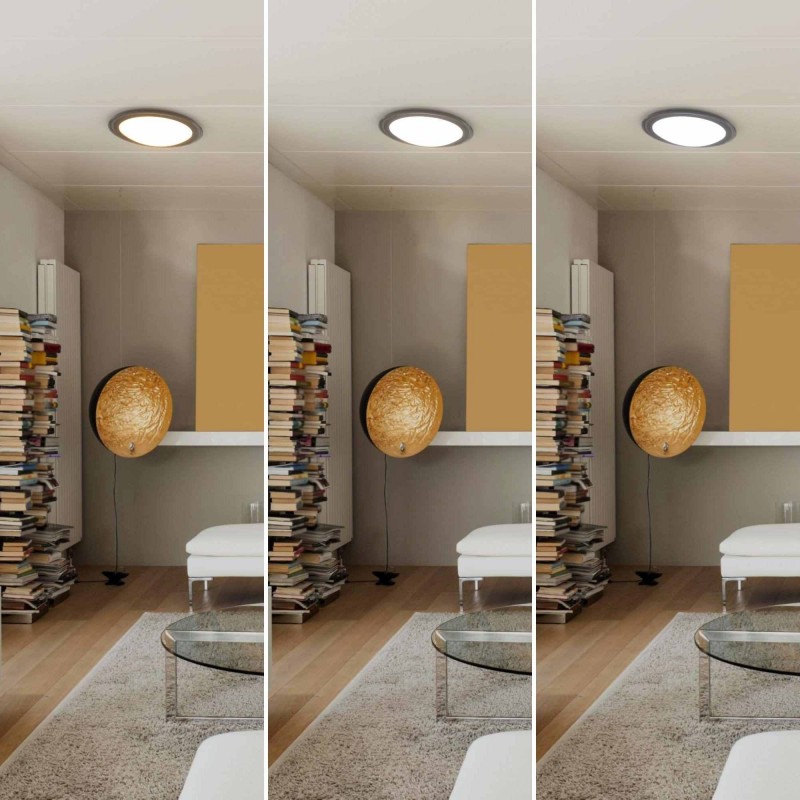 Grâce à ses dimensions, ce plafonnier peut être installé dans des plafonds bas ou dans des zones où il n'est pas possible de l'encastrer, car il ne dépasse pas excessivement de la surface du plafond et s'intègre discrètement dans la décoration de la pièce.