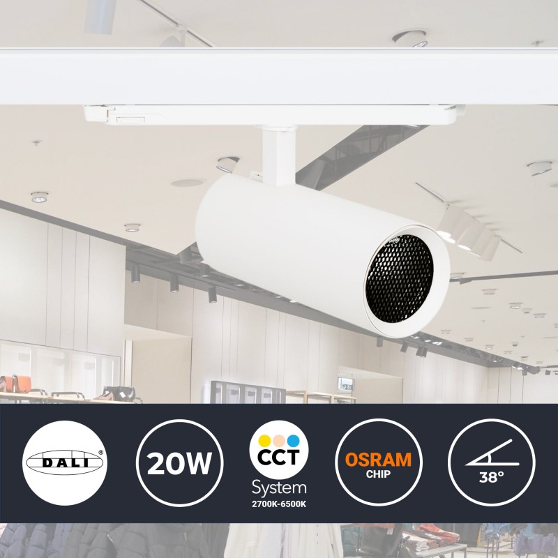 Projecteur LED triphasé 20W sur rail - DALI - CCT - CRI90 - OSRAM Chip