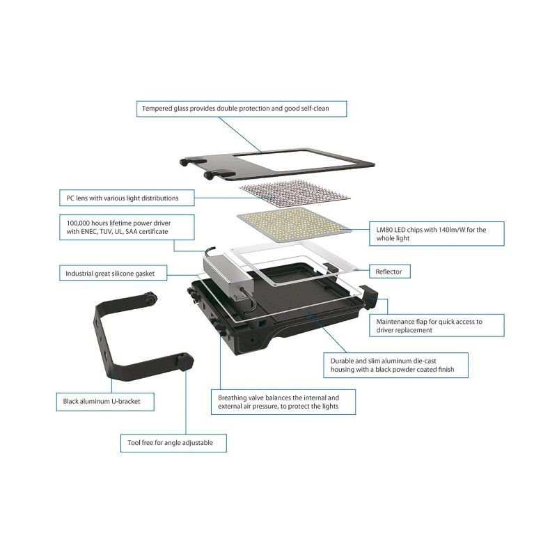 - Matériaux de haute qualité: en aluminium gris moulé sous pression et lentille en polycarbonate haute résistance, pour une longue durée de vie.