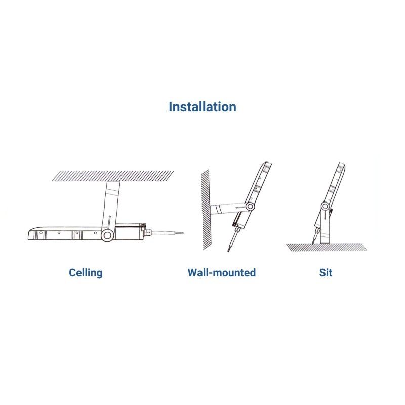 - Montage polyvalent: peut être monté au plafond, au mur, sur un poteau ou au sol, avec un support et une orientation réglables. Au moins deux points d'ancrage sont nécessaires pour une fixation sûre.